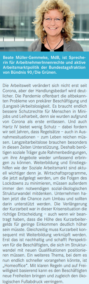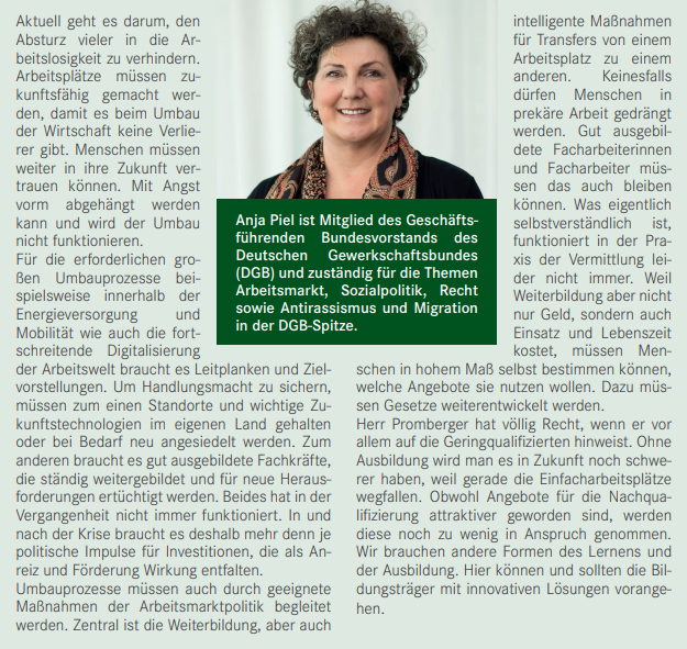 Mitglied des Geschäftsführenden Bundesvorstands des Deutschen Gewerkschaftsbundes (DGB) Anja Piel, und vier Mitglieder des Bundestages, Beate Müller-Gemmeke (Bündnis 90/Die Grünen), Sandra Bubendorfer-Licht (FDP), Kerstin Tack (SPD) und Sabine Zimmermann (Die LINKE), kommentieren das Interview mit Herrn Professor Dr. Promberger. Erschienen in der forum arbeit 03|20. Auswirkungen der Coronakrise.