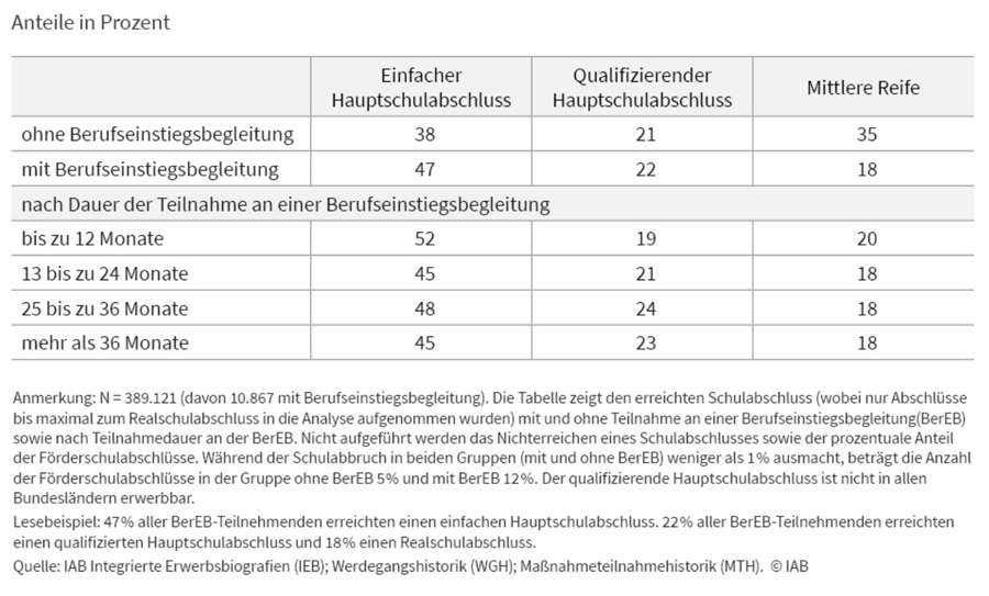 Jugendliche mit Berufseinstiegsbegleitung unterscheiden sich in ihren Schulabschlüssen von nicht teilnehmenden Jugendlichen