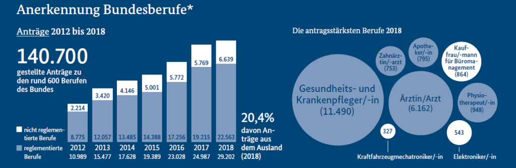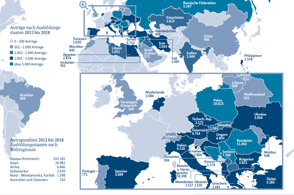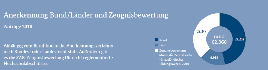 Der nunmehr fünfte Bericht des Bundesministeriums für Bildung und Forschung (BMBF) liefert wichtige Hinweise zur aktuellen Entwicklung des Themenfelds Berufsanerkennung – auf politischer Ebene ebenso wie für die Anerkennungs-Praxis. 2019 gibt es eine grundlegende Neuerung im Hinblick auf die Datenerhebung: Erstmals bildet der Bericht die Daten von Bund, Ländern und Zentralstelle für ausländisches Bildungswesen (ZAB) zusammen ab.