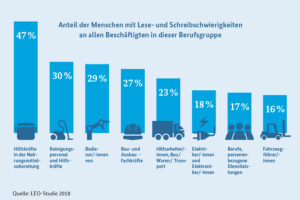 Die neue LEO-Studie gibt auch Aufschluss darüber, wie Lernangebote gestaltet und auf die Bedürfnisse der Zielgruppe zugeschnitten werden können. So wird Lesen und Schreiben beispielweise anhand von praktischen Situationen aus dem Alltag wie dem Ausfüllen von Formularen beim Arzt oder bei der Krankenversicherung geübt. Das verleiht zugleich mehr Sicherheit in Gesundheitsfragen. Auch liefert die LEO-Studie wertvolle Informationen darüber, wie die Menschen angesprochen und an welchen Orten sie angetroffen werden können. Facebook und Instagram werden von ihnen im Alltag überdurchschnittlich und regelmäßig genutzt. Solche Medien können daher auch genutzt werden, um der Zielgruppe Lernmöglichkeiten zu eröffnen.