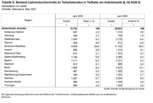 Nach Auskunft der Bunderegierung wurden für die Instrumente im Dezember 2020 rund 42 900 Förderungen nach § 16i SGB II und rund 12 200 Förderungen nach § 16e SGB II gezählt.