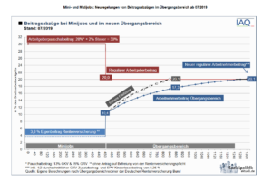 Neu ist, mit Geltung ab Juli 2019, dass der reguläre Arbeitnehmerbeitragssatz von 20,1 % erst bei einem Einkommen von 1.300 € erreicht wird.
