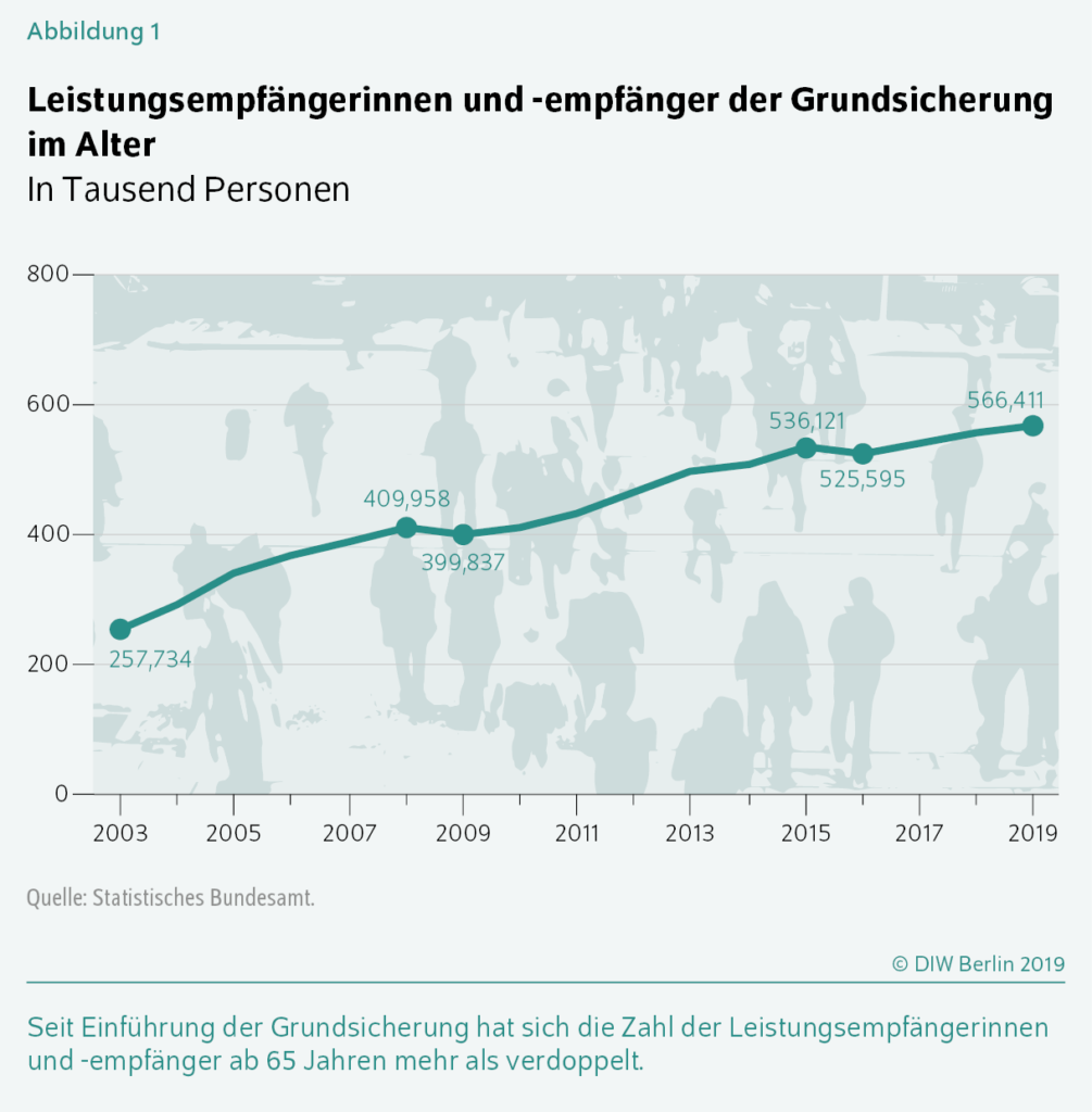 Die starke Nichtinanspruchnahme von Grundsicherung deutet, laut dem Wochenbericht des Deutschen Instituts für Wirtschaftsforschung, auf hohe verdeckte Altersarmut.