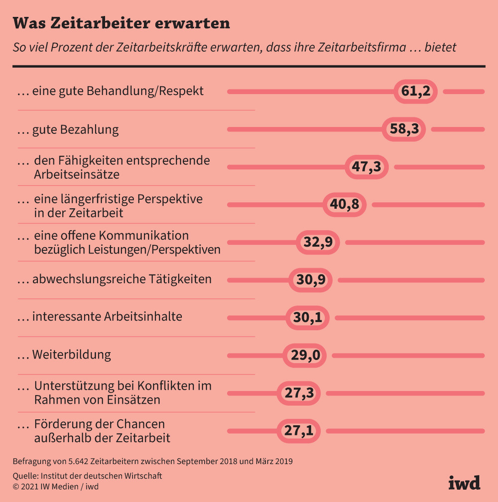 Grundsätzlich erwarten sechs von zehn Zeitarbeitskräften von ihrem aktuellen Arbeitgeber, dass sie gut bezahlt und respektvoll behandelt werden.