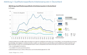 Die Gruppe der Geringqualifizierten ist zudem sehr heterogen (siehe z. B. Matthes/Weber 2019) – sie umfasst so verschiedene Gruppen wie Personen, die niemals eine Ausbildung begonnen haben, solche, die eine Ausbildung oder ein Studium begonnen, aber abgebrochen haben oder solche, die langjährige Erwerbstätigkeit in einem Tätigkeitsfeld nachweisen können, das nicht ihrer ursprünglichen Berufsausbildung entspricht (in der Terminologie der Bundesagentur für Arbeit auch „Wiederungelernte“ genannt). Auch Personen, die im Ausland erwerbstätig waren, aber deren Erfahrungen in Deutschland nicht in Form eines beruflichen Abschlusses anerkannt wurden oder deren Anerkennung nie beantragt wurde, können als geringqualifiziert gelten.